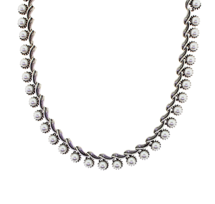 Sweet Romance Iconic 1950s Collar Necklace Silver Pearl