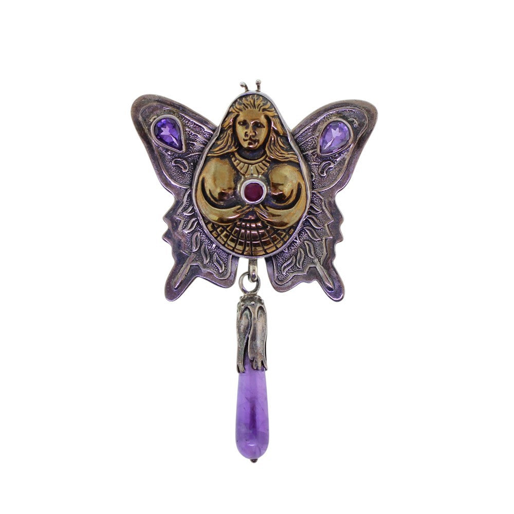 Tabra Bronze Earth Goddess Amethyst Pendant