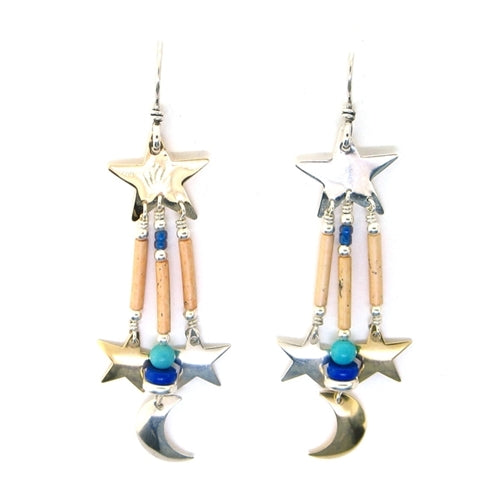 Tabra Star & Moon Two Tone Earrings on Wires E-18